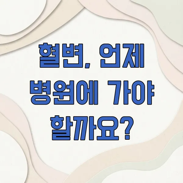 혈변을 경험했다면, 대부분의 경우 의사의 진료를 받아보는 것이 좋습니다. 특히 다음과 같은 경우에는 더욱 신속하게 의료기관을 방문해야 합니다.