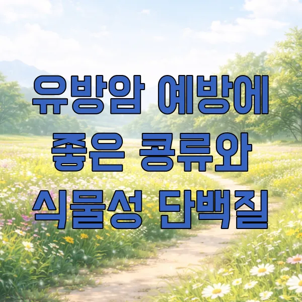 콩류에는 이소플라본 이라는 식물성 에스트로겐 성분이 들어있는데, 이것이 우리 몸의 에스트로겐 수용체와 경쟁하여 유방암 세포의 성장을 억제하는 데 도움을 줄 수 있다는 연구 결과들이 있어요. 물론 콩의 종류와 섭취량에 따라 효과는 다를 수 있지만, 건강한 식단에 포함시키면 좋은 영양소랍니다.