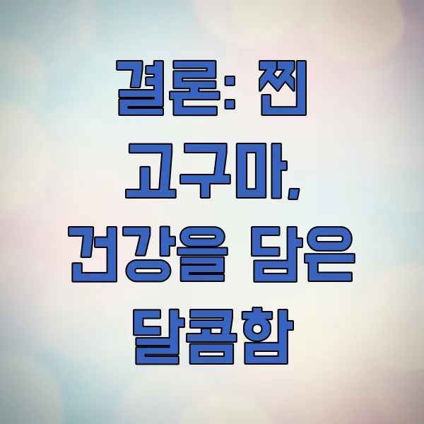 오늘부터 찐 고구마를 간식이나 식사로 자주 챙겨 드시면서, 건강하고 활력 넘치는 하루하루를 만들어가시면 좋겠어요!