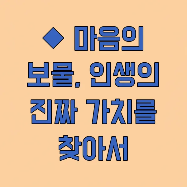 ◆ 마음의 보물, 인생의 진짜 가치를 찾아서