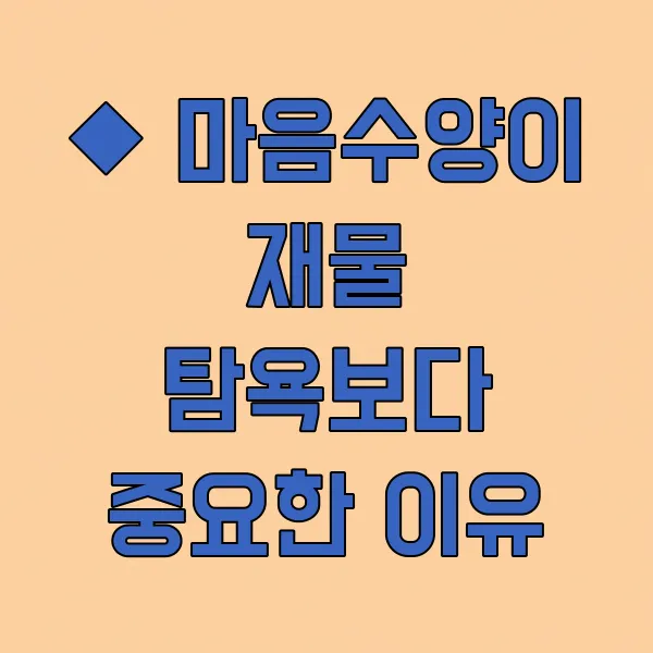 ◆ 마음수양이 재물 탐욕보다 중요한 이유